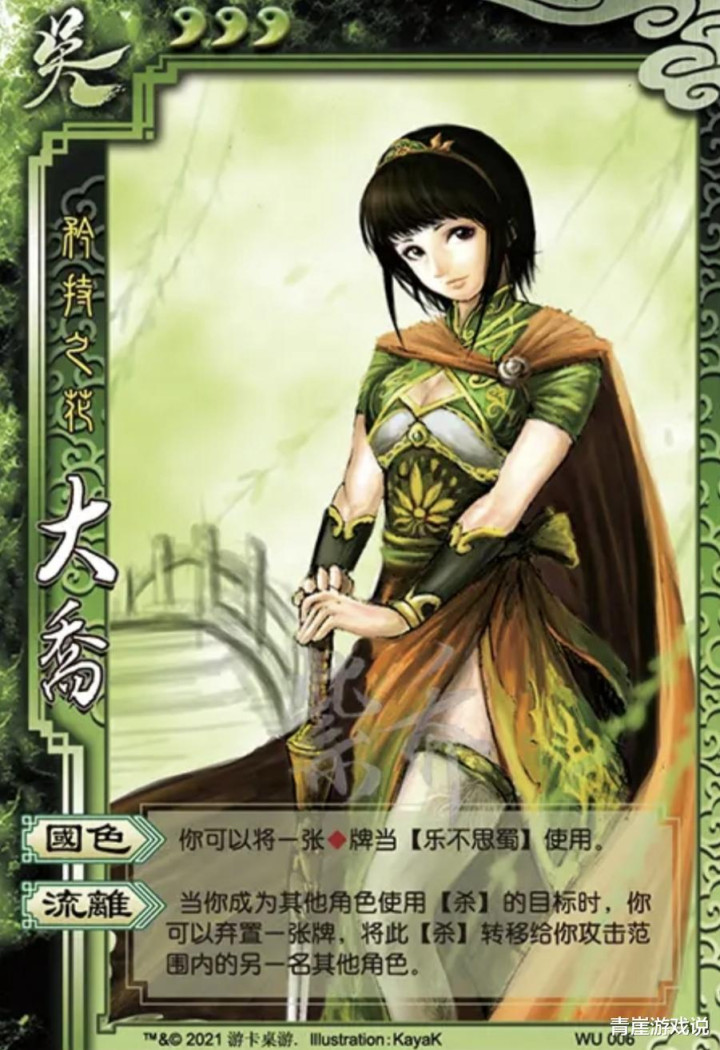 大乔则是主见神,隧说念是结果才气在早期三国杀里独树一帜!【国色】的方块牌齐能当成乐不念念蜀,惟有大乔气运够好,就能把一个敌东说念主针对的报怨魂销。更离谱的是,大乔【流离】通常能保护好我方。恰是因为太过恶心,大乔在早期的村规中是被禁玩的顶级存在!