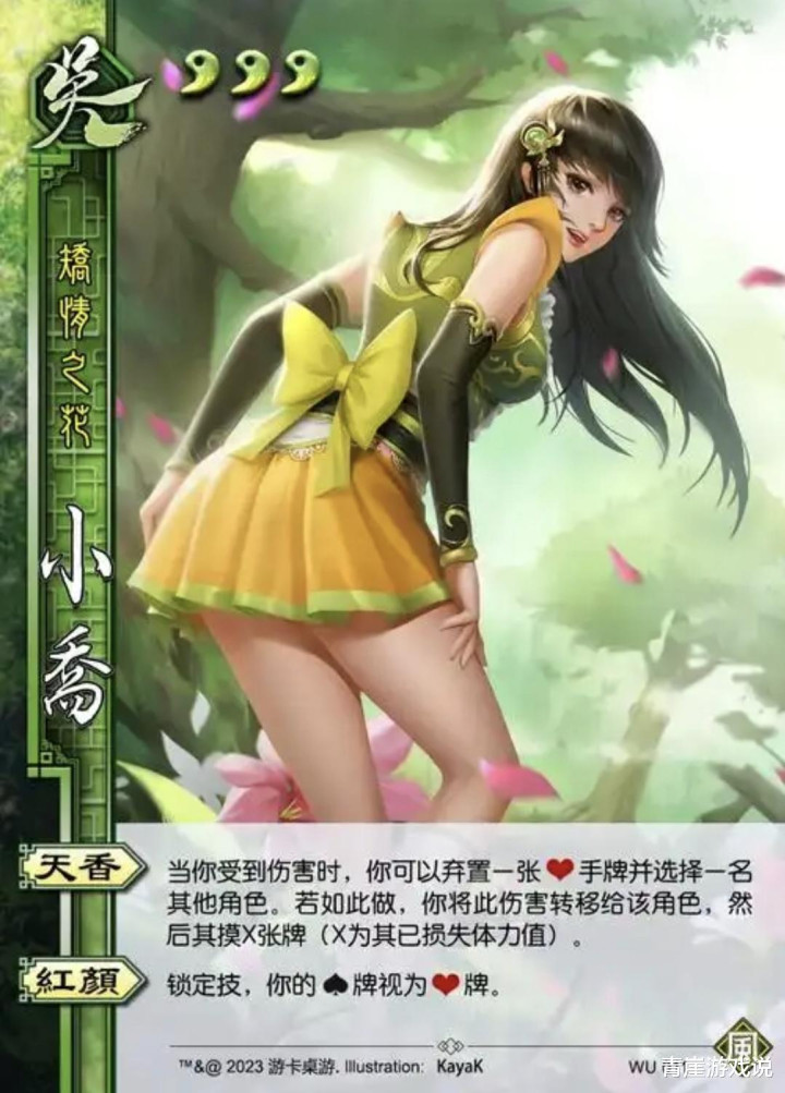 小乔凭借【天香】粗略反弹伤害,随意又凶残,谁打我我就反伤谁,就导致小乔退缩才气算越过高。何况【朱颜】加多乐不念念蜀天过概率、弗成被闪电掷中,这种早期玩家看来广大的收益!谁不可爱长得漂亮,还能保护好我方的武将呢?