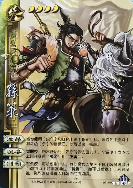 孙策是三国杀首个具有觉悟手段的武将,其历史性的机制更始当然无谓多说。前期半白板,齐是为了后期【魂姿】觉悟!诚然孙策觉悟难度大,必须是少许血量,但就冲着一个孙策还能同期玩到孙坚和周瑜三东说念主,这还不阴?