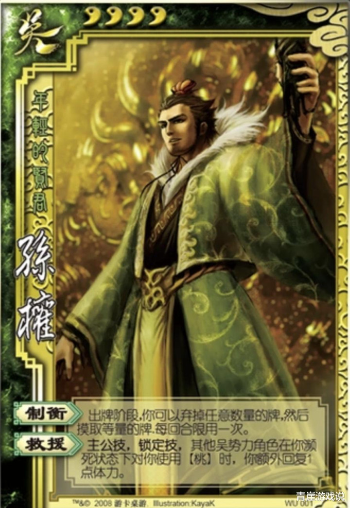 哥哥孙策榜上知名,弟弟孙权当然不遑多让。【制衡】看似莫得具体收益,但事实上却是早期最强的单挑手段!而让孙权封神的不仅仅强度,更是“会玩”,要啥牌【制衡】就有啥牌,谁还能玩的过孙权呢?